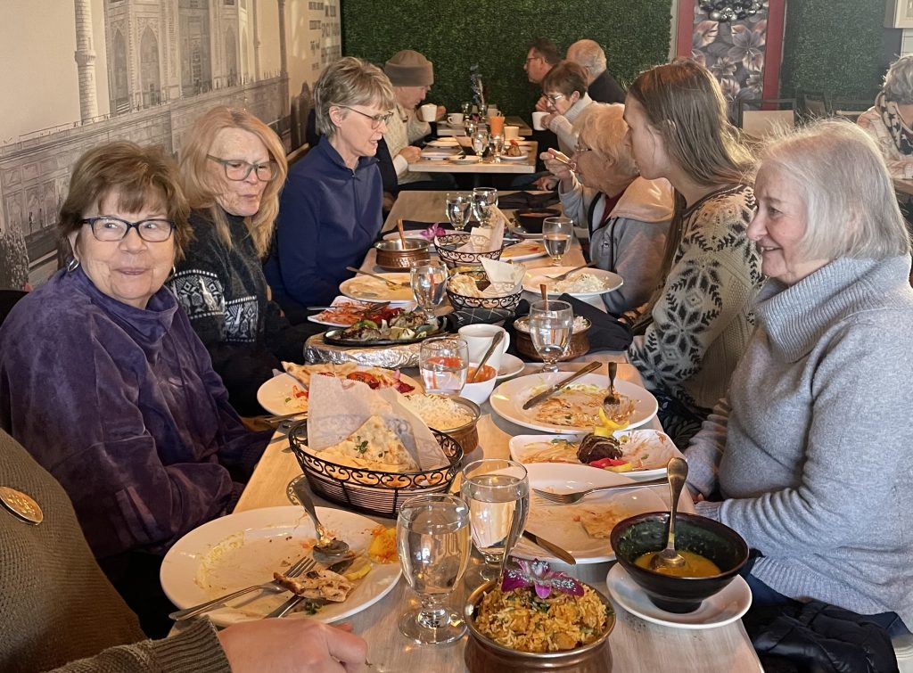A family-owned restaurant in the Westcott area of Syracuse was the location for the monthly WTB Schmai (get-together) on January 20. Over informal conversation, the women shared an appetizer platter and lunch entrees including chicken biriyani , chatt papri, gobi manchurian, baigan bhartha, shrimp soup and more. Many passed around dishes, amid positive comments and some wrote down the names so they could order the next time they visited.